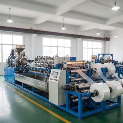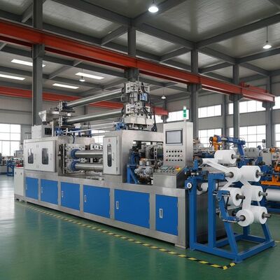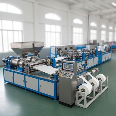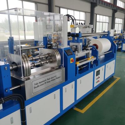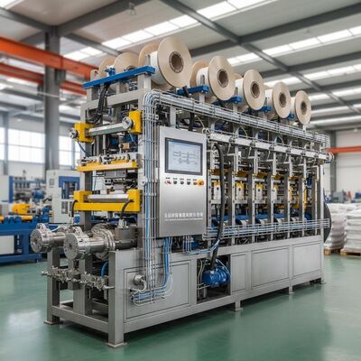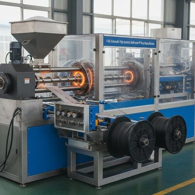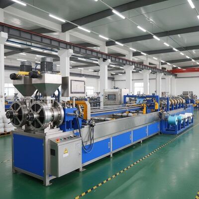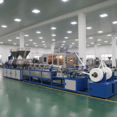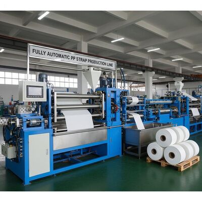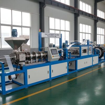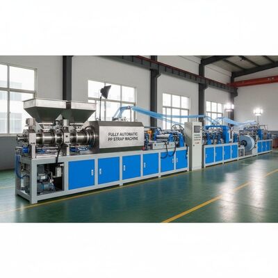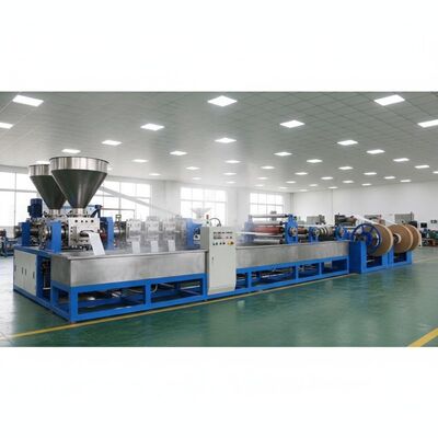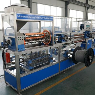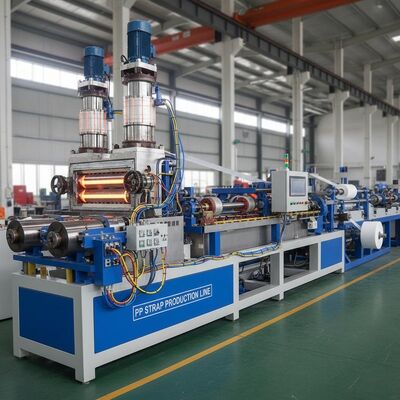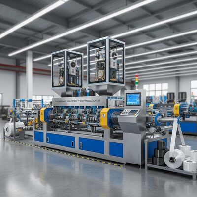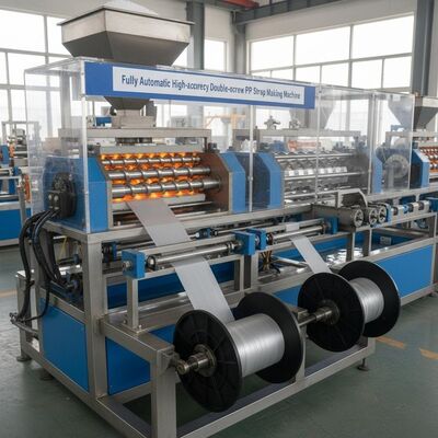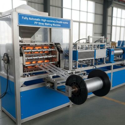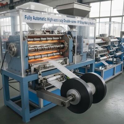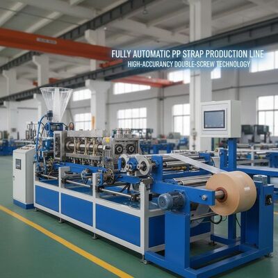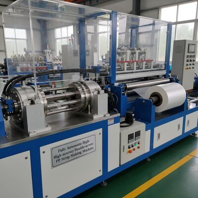 Wysokiej wydajności linia wytłaczania podwójnej śruby zaprojektowana do produkcji 4 pasów taśmy PP z precyzją i wydajnością.Ten zautomatyzowany system produkcji zapewnia stałą jakość produkcji w zakładach produkcyjnych.