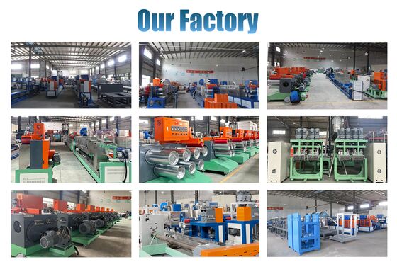 Linia produkcyjna wytłaczarki PET do taśm pakowych i rdzeni taśmowych. Komponenty obejmują pompę śrubową, łożysko, silnik, sterownik PLC 9